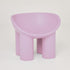 • The chair's chunky design boasts a bowl-like seat perched on four elephant-like legs.